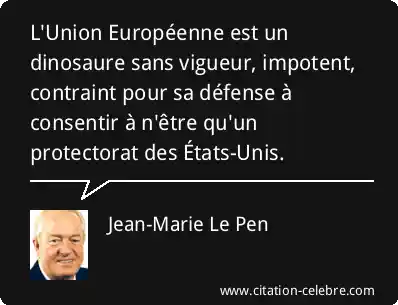 L'Union Européenne est un dinosaure sans vigueur, impotent, contraint pour sa défense à consentir à n'être qu'un protectorat des États-Unis.