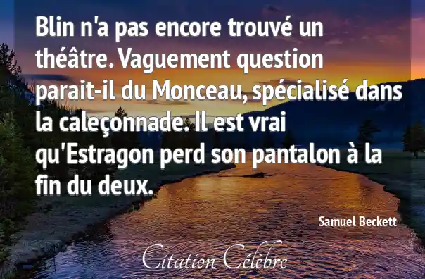Blin n'a pas encore trouvé un théâtre. Vaguement question parait-il du Monceau, spécialisé dans la caleçonnade. Il est vrai qu'Estragon perd son pantalon à la fin du deux.