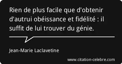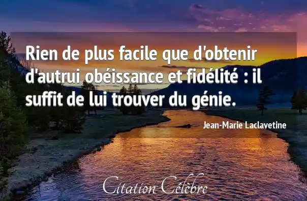 Rien de plus facile que d'obtenir d'autrui obéissance et fidélité : il suffit de lui trouver du génie.