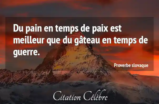 Du pain en temps de paix est meilleur que du gâteau en temps de guerre.