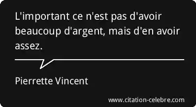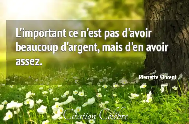 L'important ce n'est pas d'avoir beaucoup d'argent, mais d'en avoir assez.