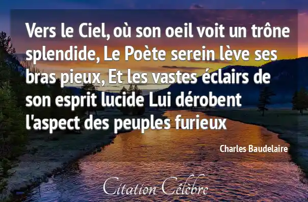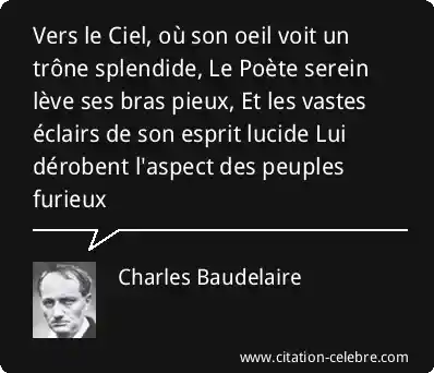 Vers le Ciel, où son oeil voit un trône splendide, Le Poète serein lève ses bras pieux, Et les vastes éclairs de son esprit lucide Lui dérobent l'aspect des peuples furieux