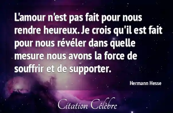 L'amour n'est pas fait pour nous rendre heureux. Je crois qu'il est fait pour nous révéler dans quelle mesure nous avons la force de souffrir et de supporter.