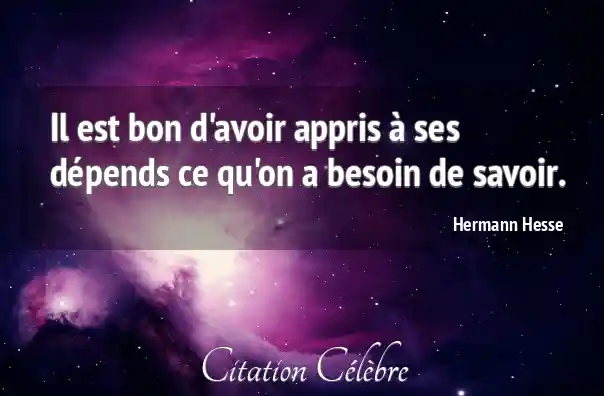 Il est bon d'avoir appris à ses dépends ce qu'on a besoin de savoir.