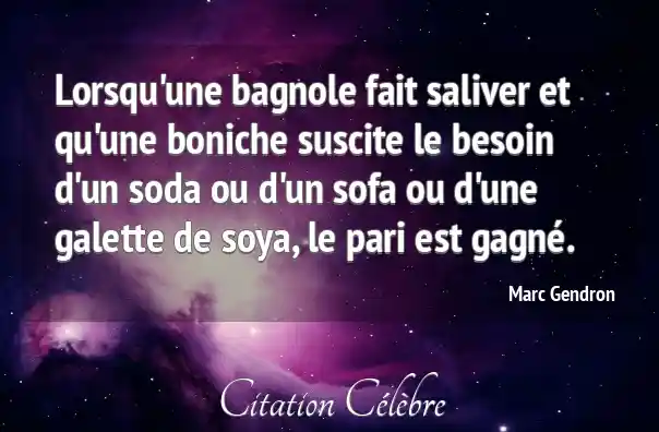 Lorsqu'une bagnole fait saliver et qu'une boniche suscite le besoin d'un soda ou d'un sofa ou d'une galette de soya, le pari est gagné.