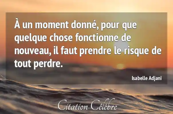 À un moment donné, pour que quelque chose fonctionne de nouveau, il faut prendre le risque de tout perdre.