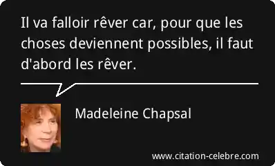 Il va falloir rêver car, pour que les choses deviennent possibles, il faut d'abord les rêver.