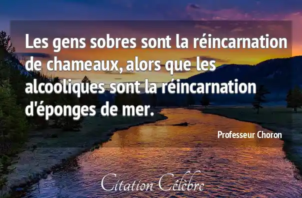 Les gens sobres sont la réincarnation de chameaux, alors que les alcooliques sont la réincarnation d'éponges de mer.