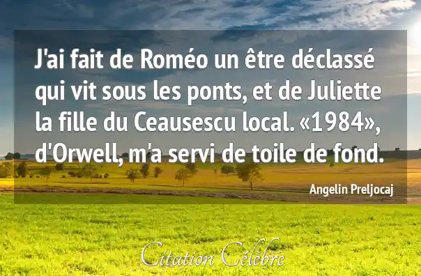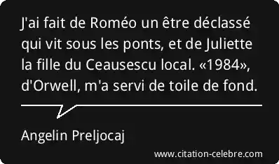 J'ai fait de Roméo un être déclassé qui vit sous les ponts, et de Juliette la fille du Ceausescu local. «1984», d'Orwell, m'a servi de toile de fond.