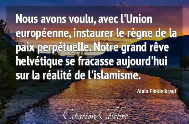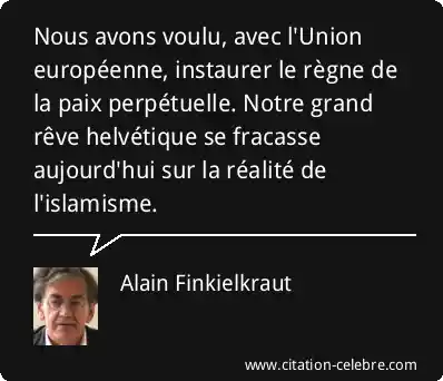 Nous avons voulu, avec l'Union européenne, instaurer le règne de la paix perpétuelle. Notre grand rêve helvétique se fracasse aujourd'hui sur la réalité de l'islamisme.