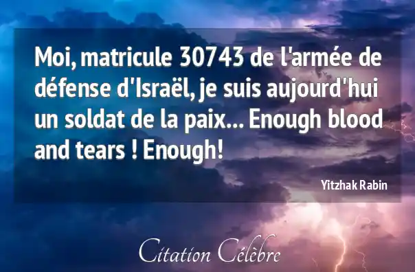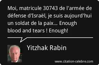 Moi, matricule 30743 de l'armée de défense d'Israël, je suis aujourd'hui un soldat de la paix... Enough blood and tears ! Enough!