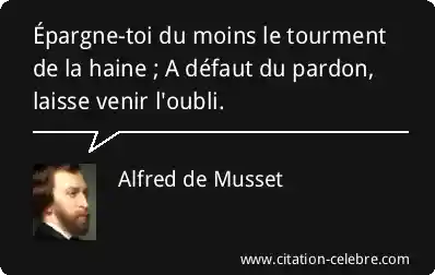 Épargne-toi du moins le tourment de la haine ; A défaut du pardon, laisse venir l'oubli.