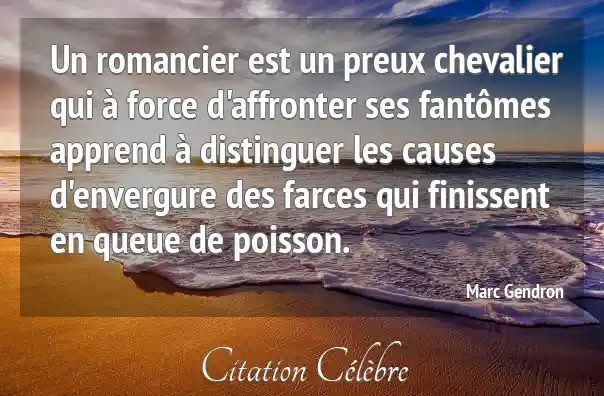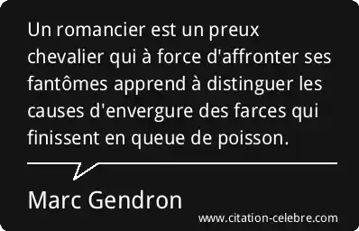 Un romancier est un preux chevalier qui à force d'affronter ses fantômes apprend à distinguer les causes d'envergure des farces qui finissent en queue de poisson.
