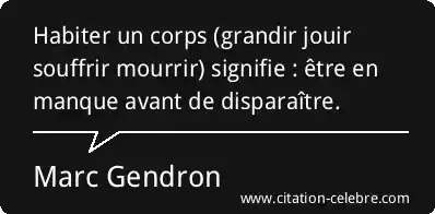 Habiter un corps (grandir jouir souffrir mourrir) signifie : être en manque avant de disparaître.