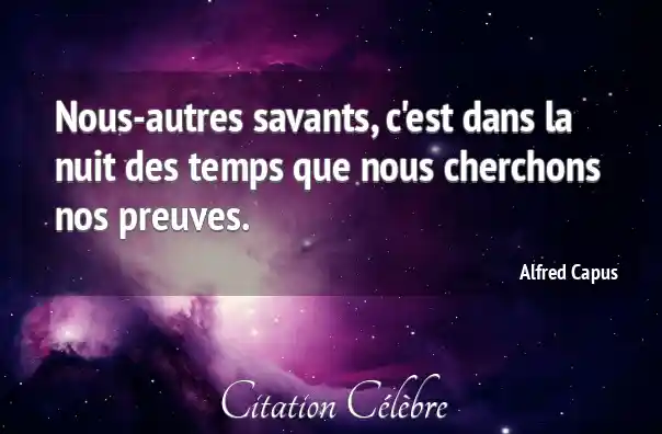 Nous-autres savants, c'est dans la nuit des temps que nous cherchons nos preuves.