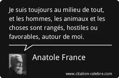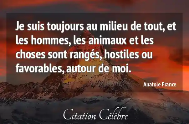 Je suis toujours au milieu de tout, et les hommes, les animaux et les choses sont rangés, hostiles ou favorables, autour de moi.
