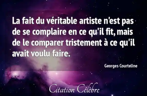 La fait du véritable artiste n'est pas de se complaire en ce qu'il fit, mais de le comparer tristement à ce qu'il avait voulu faire.