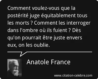 Comment voulez-vous que la postérité juge équitablement tous les morts ? Comment les interroger dans l'ombre où ils fuient ? Dès qu'on pourrait être juste envers eux, on les oublie.