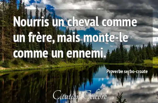 Nourris un cheval comme un frère, mais monte-le comme un ennemi.