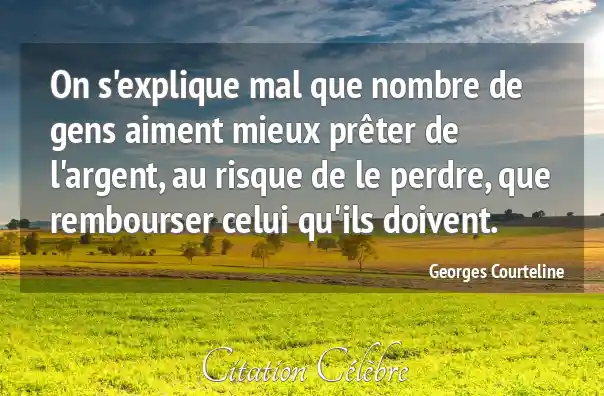 On s'explique mal que nombre de gens aiment mieux prêter de l'argent, au risque de le perdre, que rembourser celui qu'ils doivent.