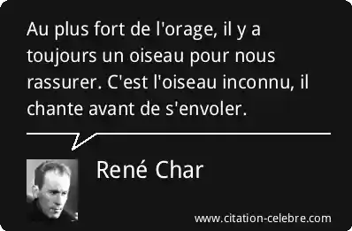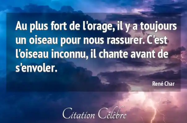 Au plus fort de l'orage, il y a toujours un oiseau pour nous rassurer. C'est l'oiseau inconnu, il chante avant de s'envoler.