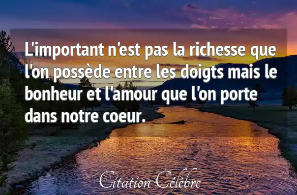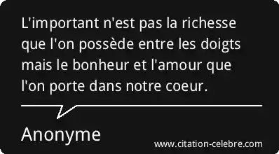 L'important n'est pas la richesse que l'on possède entre les doigts mais le bonheur et l'amour que l'on porte dans notre coeur.