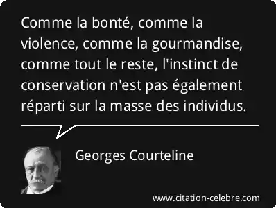 Comme la bonté, comme la violence, comme la gourmandise, comme tout le reste, l'instinct de conservation n'est pas également réparti sur la masse des individus.