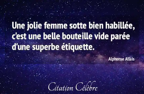 Citation Alphonse Allais femme : Une jolie femme sotte bien habillée, c'est une belle bouteille...