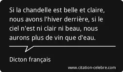 Si la chandelle est belle et claire, nous avons l'hiver derrière, si le ciel n'est ni clair ni beau, nous aurons plus de vin que d'eau.