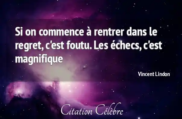Si on commence à rentrer dans le regret, c'est foutu. Les échecs, c'est magnifique