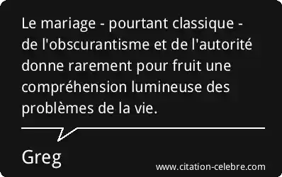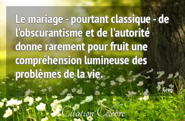 Le mariage - pourtant classique - de l'obscurantisme et de l'autorité donne rarement pour fruit une compréhension lumineuse des problèmes de la vie.