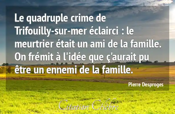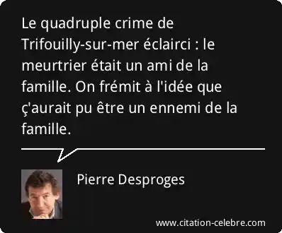 Le quadruple crime de Trifouilly-sur-mer éclairci : le meurtrier était un ami de la famille. On frémit à l'idée que ç'aurait pu être un ennemi de la famille.