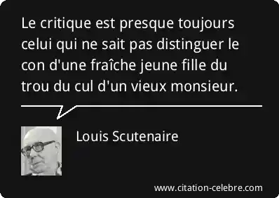 Le critique est presque toujours celui qui ne sait pas distinguer le con d'une fraîche jeune fille du trou du cul d'un vieux monsieur.