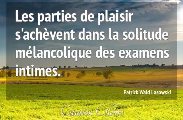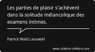 Les parties de plaisir s'achèvent dans la solitude mélancolique des examens intimes.