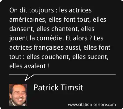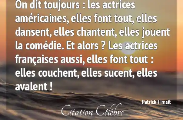 On dit toujours : les actrices américaines, elles font tout, elles dansent, elles chantent, elles jouent la comédie. Et alors ? Les actrices françaises aussi, elles font tout : elles couchent, elles sucent, elles avalent !